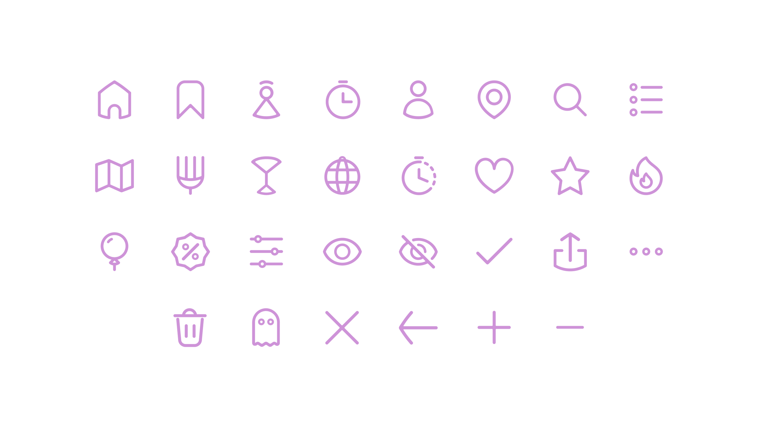 The iconography has been carefully and exclusively designed for this project. Creating intuitive visual symbols and icons to represent actions, objects, or concepts within the app was essential.